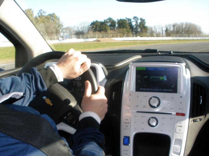 El Volt puede alcanzar los primeros 100 km/h en 9 segundos y seguir hasta los 160 km/h cuando el limitador lo contiene por razones de consumo. En el Autódromo no probamos ninguna de estas dos características pero si hundimos a fondo el acelerador en recta. El resultado es extraño, debido al gran torque y a su disponibilidad inmediata, propio de los impulsores eléctricos, no hay un crecimiento y un pico de fuerza como en los autos convencionales, simplemente se mantiene acelerando con fuerza y de manera constante.