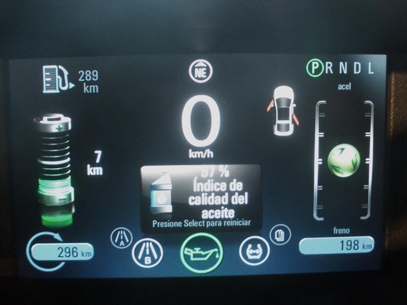 Apenas subidos a la cabina del Volt se aprecia es su diseño moderno, con decorados símil Laptop en las contrapuertas y dos pantallas de 7”, que incluyen estado de carga y autonomía así como el grado de “eco-conducción” que indica si la aceleración y la frenada son eficientes. El Volt es capaz de recuperar energía en el 94% de las desaceleraciones (hasta -0.2g), además su cuatro discos cuentan ABS y control de estabilidad.