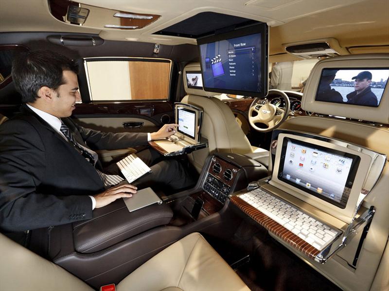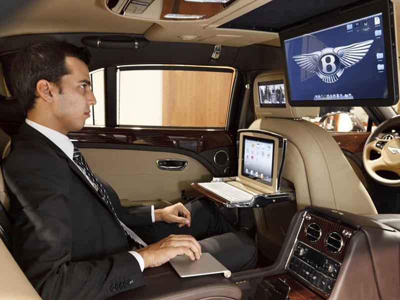 El habitáculo del Bentley Mulsanne está equipado con conectividad multimedia, ideal para negocios y por qué no, también para tener momentos de ocio y relajación. Aunque eso sí, en esta ocasión el conductor no es el “consentido” sino los acompañantes.