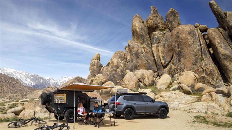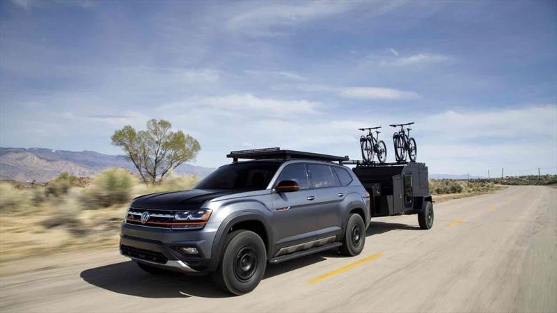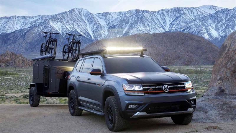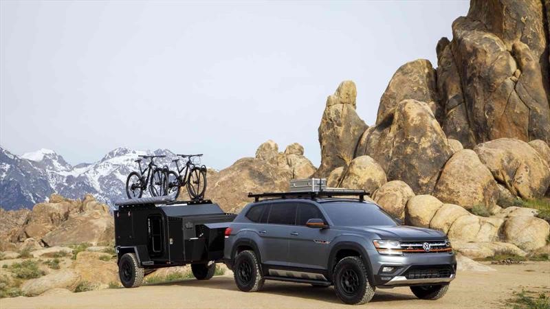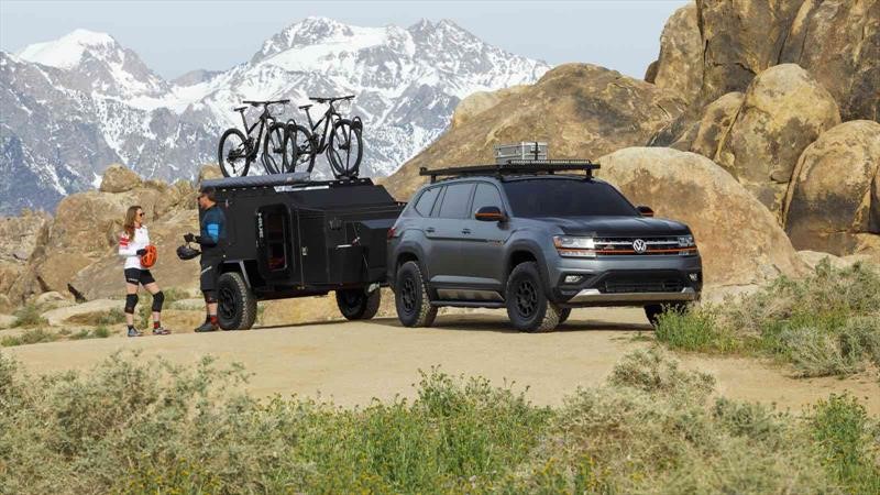 Además, el Atlas Basecamp Concept se muestra con un remolque compacto apto para todo terreno, con ruedas y neumáticos similares a la SUV. Más allá de sus aptitudes todoterreno, este tráiler está equipado con una cama queen size, cortina extraíble y una pequeña cocina con un horno, bacha y heladera que puede funcionar con una batería opcional de 12v. También incluyen un tanque de agua autónomo, tanque de propano, inodoro portátil, ducha de agua caliente y gatos de nivelación extraíbles.