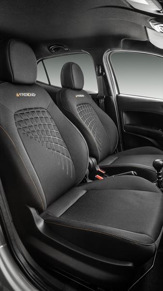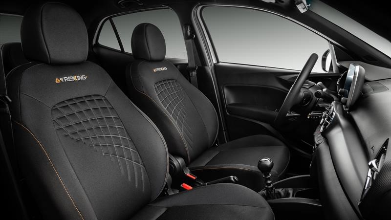 Puertas adentro también hay cambios como tapizados oscuros con costuras naranjas y logo Trekking bordado, salidas de aire cromadas y pantalla de 7” con sistema Uconnect.