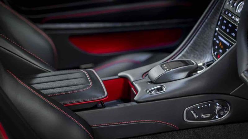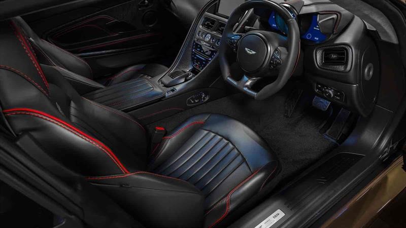 Adentro, está confeccionado para reproducir al DBS original de 1969 por medio de la tapicería de cuero negro y alcántara gris, así como los acentos en color rojo. Otro detalle más de esta edición especial es que cada uno de los 50 propietarios tendrán la opción de seleccionar un estuche para bebidas diseñado a medida. Éste se abre a través del cierre de metal brillante para revelar el interior forrado de fieltro rojo, con espacio para dos botellas de champán y cuatro copas.