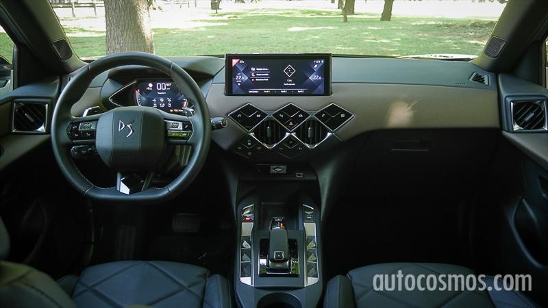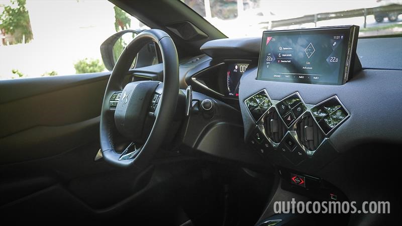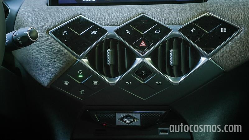 Los plásticos son los correctos para este tipo de modelos y dependiendo del nivel de equipamiento el decorado principal puede ser de cuero. En el centro tenés el mismo estilo que vimos en el DS 7 con botones grandes que muestran un gran trabajo de textura, pero se sienten plásticos. Personalmente me gustaron las bocas de aire laterales que están instaladas en las contrapuertas.