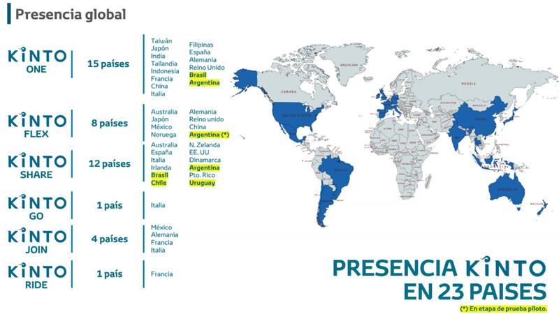 - Incialmente llamado Toyota Mobility Services está activo desde fines de 2018 en Argentina ya registró más de 19.000 usuarios y alcanzó alrededor de 7.500 alquileres.