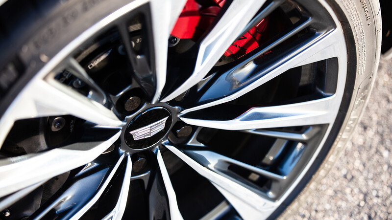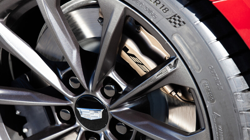 - Brembo es quien firma los cálipers de ambos modelos, con seis pistones en el frente y cuatro en el eje trasero. Estos son los frenos más grandes jamás instalados en un Cadillac.