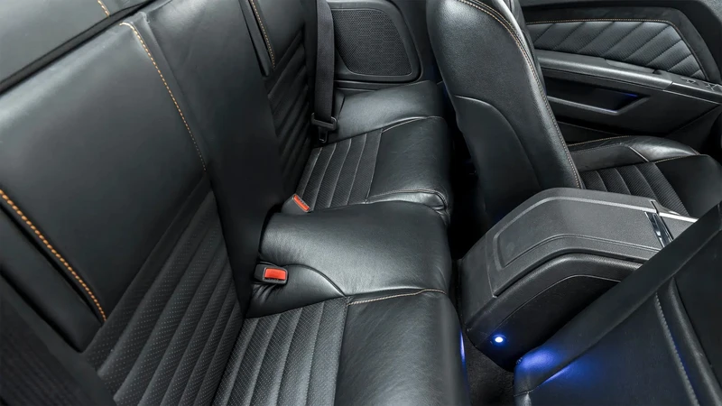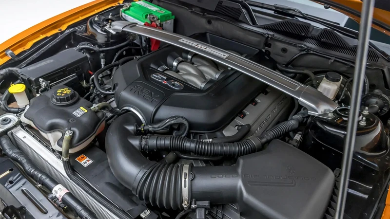El resto del auto queda bastante inalterado, incluyendo el V8 de 5.0L Coyote, la caja automática de sexta y el eje sólido trasero que el Mustang cambiaría recién en la generación siguiente.