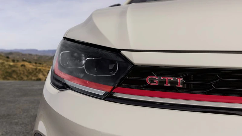 - Color rojo en laterales de asientos y sigla GTI en el centro