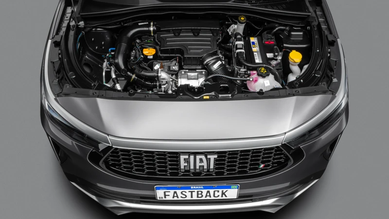 La base es la plataforma MLA, una pasada en limpio de la de Argo y Cronos que debutó en el Pulse. Se mantienen los frenos traseros de tambor, pero la marca indica que el Fastback frena en menos distancia que sus competidores (aunque no indica cuáles son esos competidores).