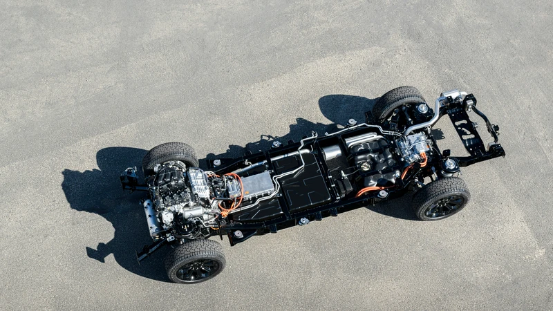 Técnicamente, la Ramcharger utiliza la nueva plataforma STLA Frame de Stellantis que monta la batería en la parte delantera, entre los largueros del chasis, y deja el tanque de combustible en la sección posterior. El chasis incluye de serie suspensión neumática con cinco modos.