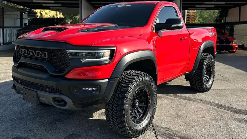 Si la RAM 1500 TRX original no pasa desapercibida, mucho menos lo hace la modificada por Xtreme Offroad Park. El constructor oriundo del estado de Texas tomó apunte del pedido: sumó un kit de carrocería para hacerla más robusta, redujo la distancia entre ejes en 254 mm, la hizo cabina simple y reprogramó el sistema de tracción a las cuatro ruedas para que funciones como un tracción trasera. Finalmente cambió las ruedas por unas todoterreno de 37 pulgadas, y colocó amortiguadores Bilstein.