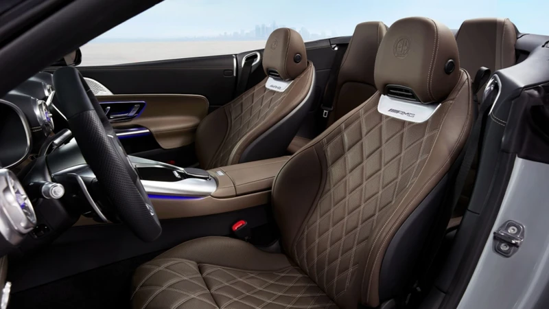 Puertas adentro, el SL 63 SE Performance se presenta con una estética deportiva en la que se mantiene la configuración 2+2: dos asientos delanteros deportivos y otros dos posteriores de espacio reducido. El interior también puede ser personalizado con el paquete Energizing Plus, que incluye funciones de masaje e iluminación ambiental, tapicería de cuero Nappa a medida del color con costuras de diamantes, detalles que pueden incluirse en los reposabrazos, la consola central, entre otros.