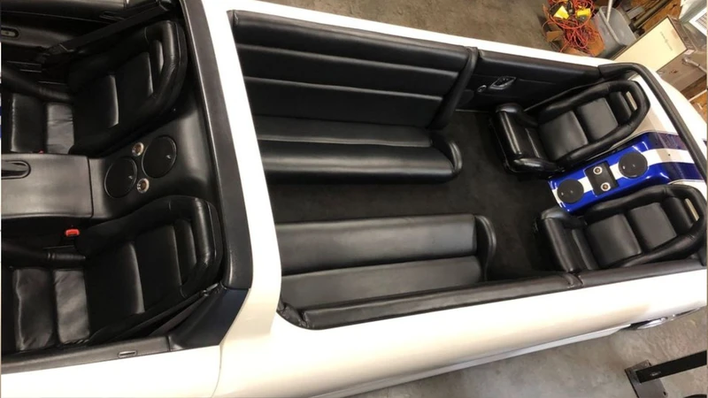 La principal alteración de este deportivo fue en la parte central, en la que se agregaron asientos para que puedan viajar hasta 12 personas y disfrutar el aire libre. Si, el preparador también le sacó el techo.