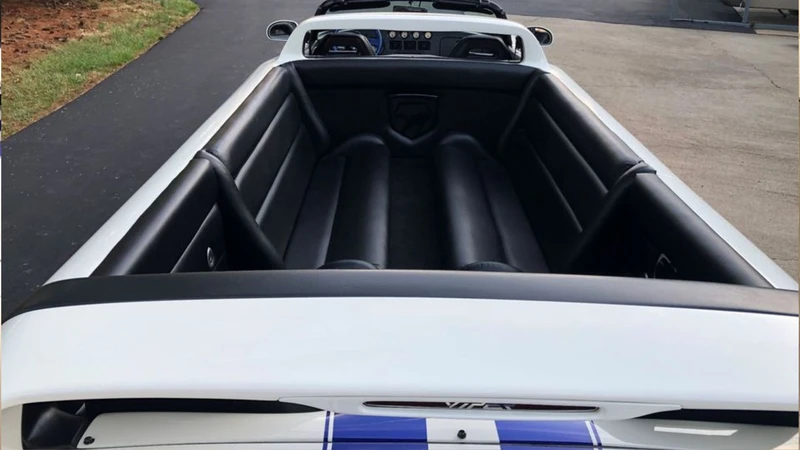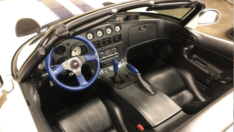 En vez de estar impulsado por el V10 longitudinal de aspiración natural que produce 406 CV y 630 Nm vinculado a una caja manual de seis relaciones, este Viper RT/10 es alimentado por un V8 Mopar 360 Magnum de 390 CV, que trabaja con una caja automática de la que el vendedor no brinda más detalles.