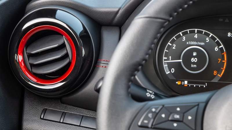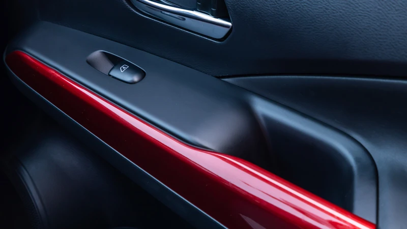 En el habitáculo, la filosofía es la misma: detalles rojos sobre negro, tanto en las salidas de aire, como en las costuras, la base del volante, las alfombras, los apoyabrazos y los asientos, que tienen un “acabado Premium”, con tejido sintético gris.