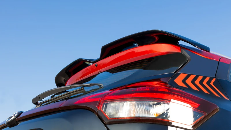 Por fuera, los cambios visibles son los detalles de color rojo en los zócalos de las puertas, difusor delantero, techo, espejos y calcomanías distintivas, que generan un contraste con la intura negra de la carrocería y de las llantas de 17 pulgadas. Además, en las fotos se aprecia un spoiler en la parte superior del portón trasero, pero no se informó nada al respecto. El número de unidad se encuentra en una placa roja en la parrilla.
