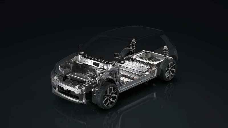 La reencarnación del Renault 5 parte de la plataforma AmpR Small, que sería una pasada en limpio de la CMF-B EV, y si bien se lo ve corpulento solo mide 3.920 mm de largo, siendo más corto que el Clio.