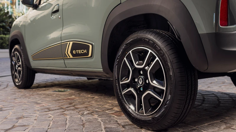 El Kwid eléctrico estrena el facelift del hatchback de la marca, con cambios en la disposición de las luces delanteras, que ahora están divididas en dos partes, una “parrilla” que esconde el puerto de carga y leves retoques en las partes bajas, ópticas traseras, llantas e interior. Además, el Kwid E-Tech cuenta con detalles en negro y dorado para diferenciarlo de las variantes a combustión.