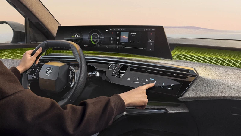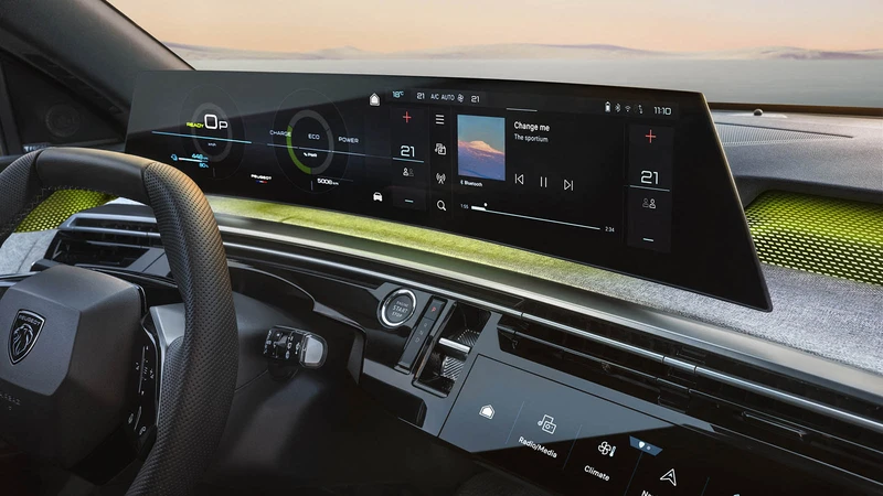 - i-Cockpit Panorámico, estrenado en el E-3008: un panel curvo y flotante de 21", que integra: