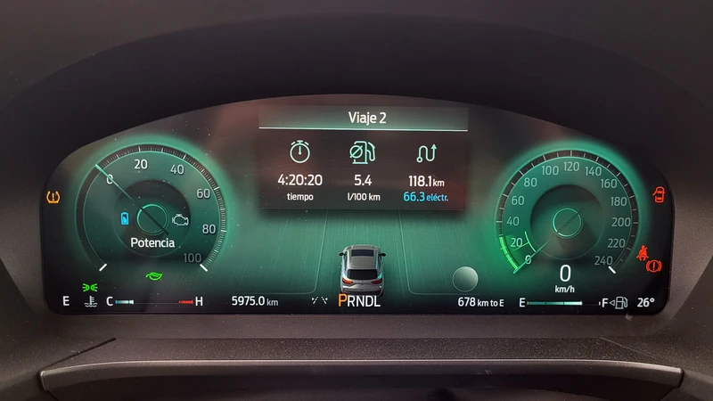 Giramos la selectora tipo perilla a D y en la mayoría de los casos el Kuga se va a poner en marcha en modo eléctrico y va a mantenerse así un buen trecho, o hasta que necesitemos más velocidad. Recordemos que la mecánica híbrida de este modelo es bastante usada por Ford combinando