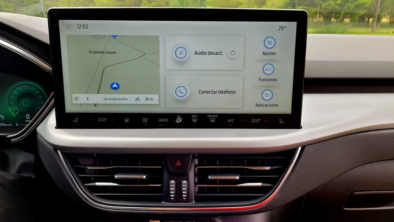 El nuevo equipo multimedia elimina los botones que estaban en la base de la anterior, y absorbió los comandos físicos de climatización, pero, si bien los anteriores eran más prácticos, tengo que reconocer que la pantalla es tan grande, que acá se pueden operar sin tener que salir de la función que se está usando.