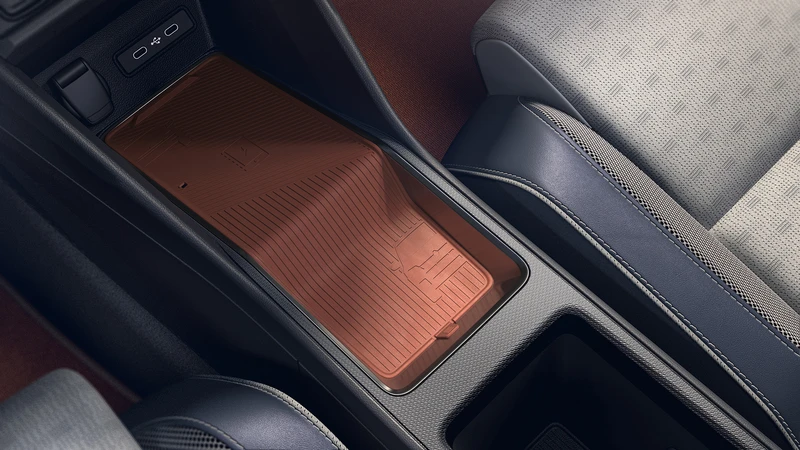 Otras soluciones inspiradas en el mundo de las canchas es el selector de marchas con estilo grip de las raquetas, y el uso de polvo de ladrillo en el la tapa del cargador por inducción y las alfombras.