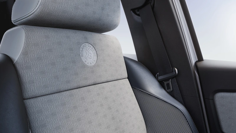 Puertas adentro se luce el tapizado en gris claro con un tejido 100% reciclado que se inspira en la ropa técnica deportiva. El conjunto se realza con soportes laterales recubiertos de TEP azul y el logotipo de Roland-Garros grabado en los respaldos de los asientos delanteros.