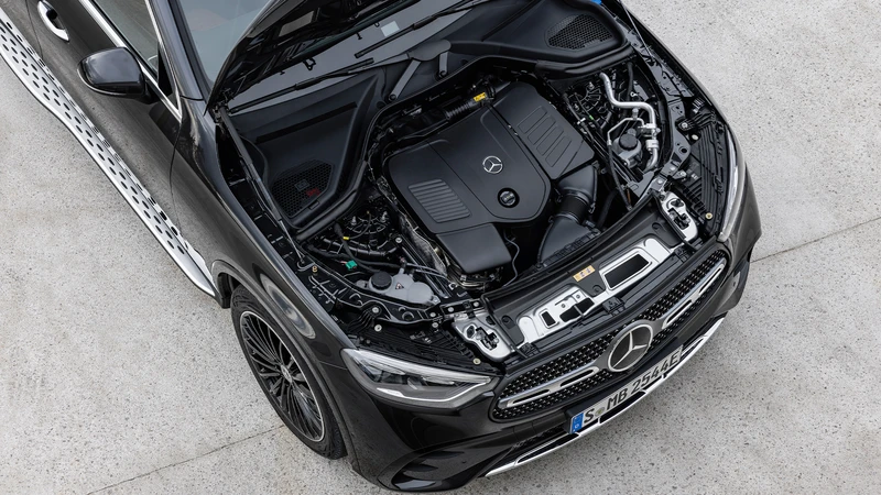 La nueva GLC Coupé incorpora un tren motriz electrificado gracias a un Sistema Mild Hybrid de 48V, que cumple la función de generador y ayuda en los arranques. El motor a combustión es un 2.0 L de cuatro cilindros que entrega 258 CV y 400 Nm, y está acoplado a una caja automática de nueve relaciones, que envía la potencia a las cuatro ruedas.