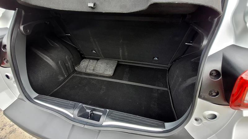 Atrás el espacio es correcto para un citycar, y el baúl es grande, con una gratísima sorpresa, debajo de su piso hay una rueda de auxilio de chapa con las mismas medidas que las ti-tu-la-res.