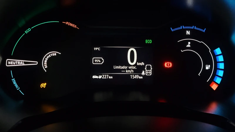 Sacamos al Kwid eléctrico de su ámbito de confort y en ruta es algo ruidoso, no de motor sino por falta de estanquidad respecto del roce aerodinámico. Si usás el Modo Eco no va a pasar de los 105 km/h de velocímetro; si pasás al modo convencional, te va a marcar hasta 130 en el velocímetro que son unos 126 km/h reales.