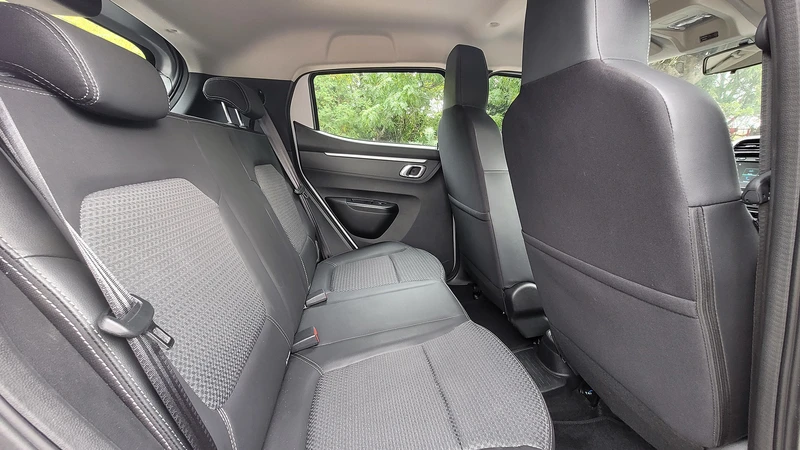 En seguridad, el Kwid E-Tech combina buenas con no tanto, no discuto los tambores traseros en un auto de su peso y prestaciones, pero me llamó la atención que estuviera homologado para cuatro personas, sin apoyacabezas ni cinturón trasero central. La buena es que viene con 6 airbags.