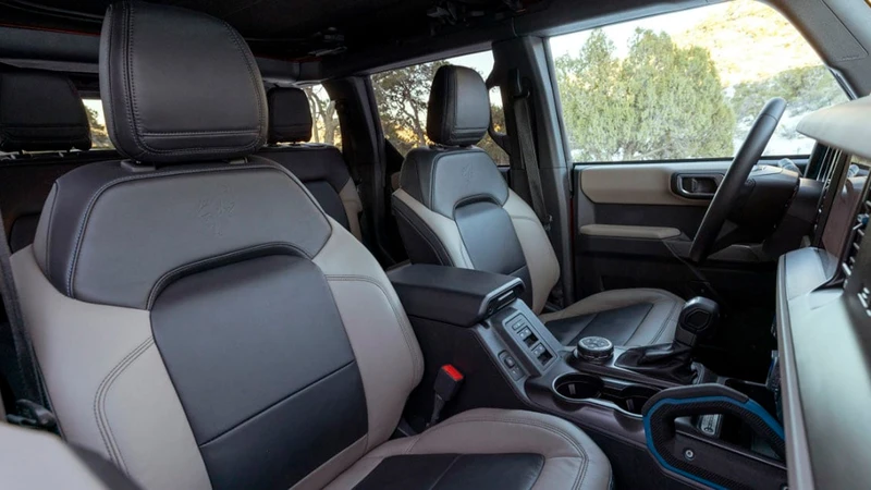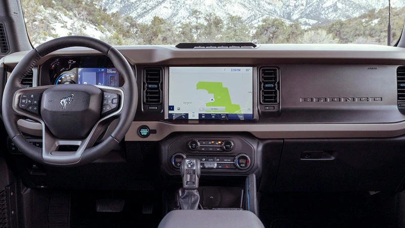 En materia de equipamiento, la Bronco Wildtrak cuenta con un tablero mixto, es decir, analógico para el velocímetro y digital para el resto, conteniendo la información en un display de 8”. La pantalla central es de 12” y cuenta con sistema SYNC 4, Android Auto y Apple CarPlay inalámbricos, navegador integrado, y más.