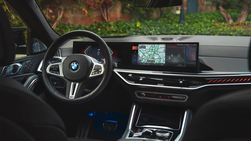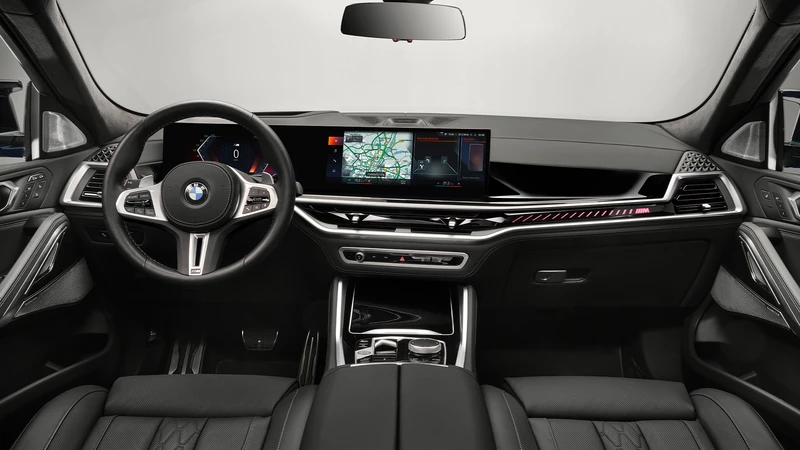 La nueva X6 presenta un interior que sigue los lineamientos de los otros modelos de la marca, con un volante deportivo M, un plafón curvo con dos pantallas: una de 12,3” para el tablero y otra de 14,9” para la multimedia, que cuenta con posibilidad de controlar el volumen o atender llamadas realizando gestos.