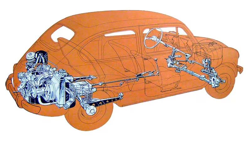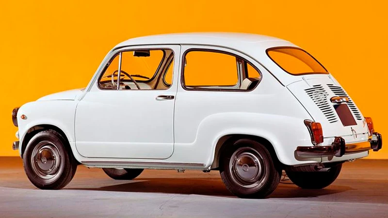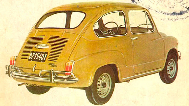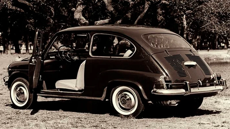 La primera variante del 600 que se ofreció en Argentina era idéntica al modelo ofrecido en Italia, con su diseño redondeado, las molduras cromadas y un detalle muy interesante: tenía puertas suicidas, es decir, se abrían “en contra del viento”. El motor en la parte trasera permitía que el 600 tuviera un baúl delantero, pero este no era de grandes dimensiones porque ahí estaban la rueda de auxilio y el tanque de combustible de 27 L.