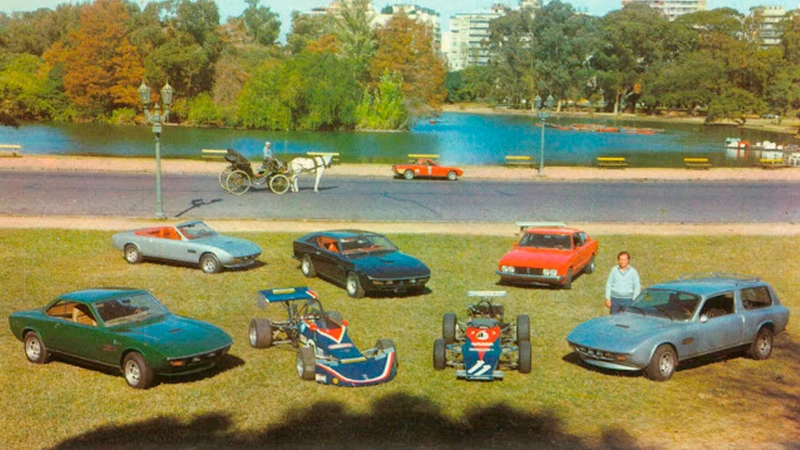 Tulio Crespi con todas sus creaciones en aquella época - Foto: Archivo de Autos