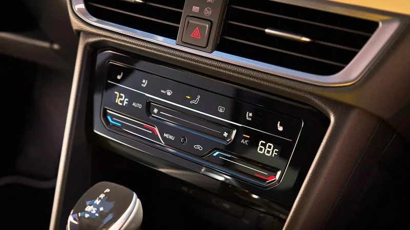 Los comandos para el climatizador (que también incluyen las butacas calefaccionadas y ventiladas) siguen siendo capacitivos, pero el volante cuenta con botones físicos, aunque tendremos que ver qué se decide para el Taos argentino.