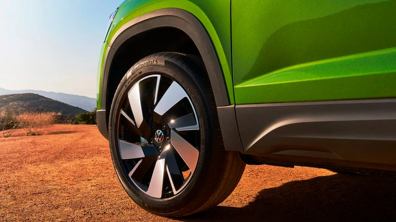 Dejando de lado el llamativo color verde elegido para la presentación, el Taos presenta una cara renovada, manteniendo las líneas generales del diseño, pero ligandose a lo que estamos viendo en los últimos modelos de la marca, con un nuevo paragolpes delantero y una boca inferior amplia, de la que solo la parte inferior es funcional, además de un aplique gris que enmarca la “parrilla” y varios detalles negros.