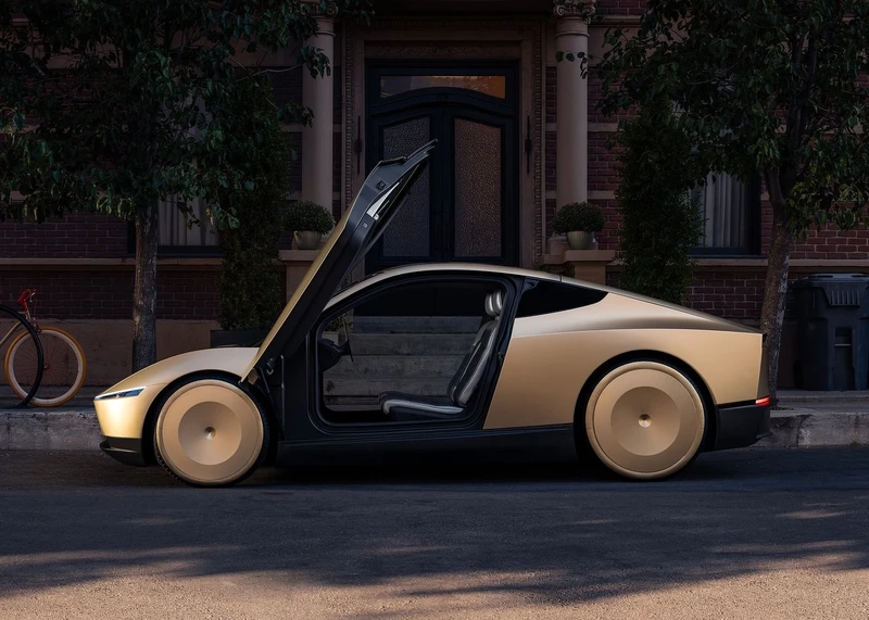 Al ser un auto 100% autónomo, Tesla no vio la necesidad de poner espejos laterales ni un cristal a modo de luneta para permitir ver que hay detrás; sino que las cámaras y sensores del auto se encargarán de esas tareas. De igual forma, para sacar el mayor provecho de la aerodinámica, llevará "tazas" en las ruedas para lograr reducir el coeficiente de arrastre al máximo.