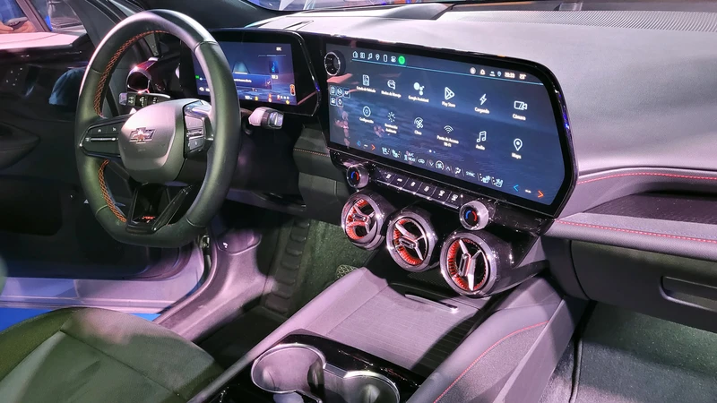 Tan destacado como el diseño exterior de estilo deportivo es el interior donde se observan muchos guiños al Camaro, especialmente en las salidas de aire, combinados con las mega pantallas, de 11” para el cuadro de instrumentos y de 17,7 pulgadas para multimedia.