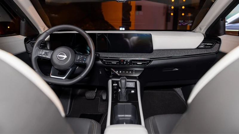 Al menos en la versión "Platinum" que manejamos, los asientos están tapizados en cuero sintético, y otro aspecto a destacar son los materiales suaves en las puertas y el tablero, incluyendo una gran superficie cubierta en tela en este último. Además, Nissan también se esforzó en mejorar el aislamiento acústico, creando una cabina más silenciosa.