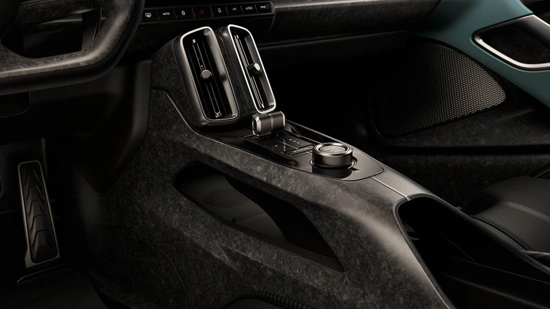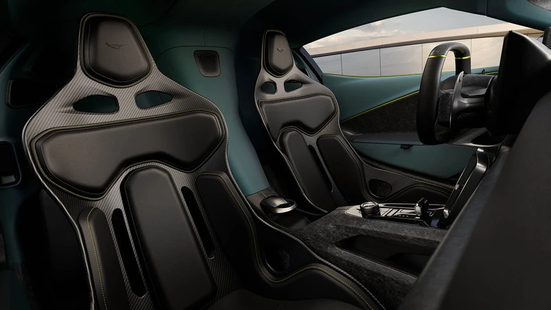 Sobre la estructura de fibra de carbono, cortesía del equipo Aston Martin de F1, encontramos el habitáculo. Aston Martin no había revelado fotos del interior en ninguno de los prototipos anteriores, y finalmente tenemos un ambiente de competición, pero con materiales de lujo.