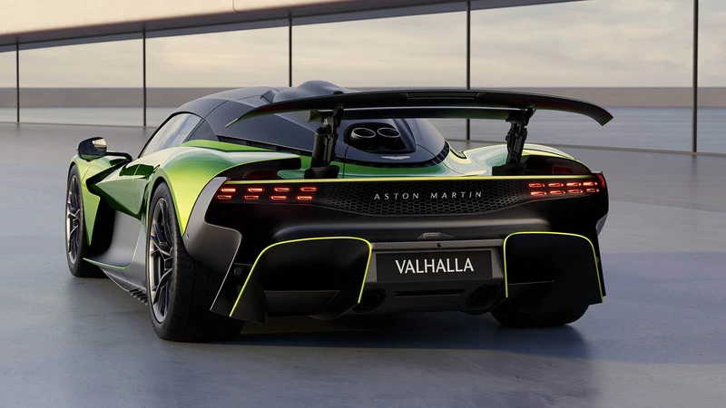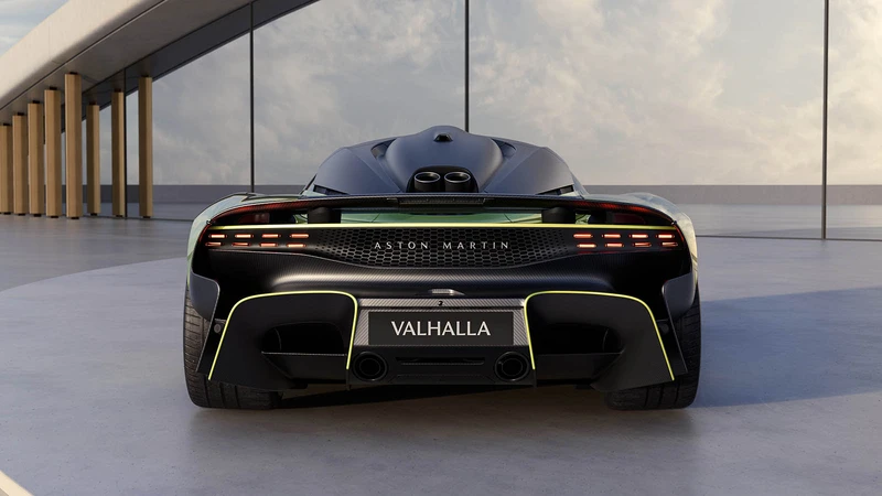 Desde las puertas de apertura diedral, hasta la toma de aire superior, el sistema de escape con dos salidas superiores (y dos ocultas inferiores) y las luces 3D traseras, el Valhalla combina la belleza y elegancia de un Aston Martin con el diseño funcional de un auto de carreras ligero, lo que le da un diseño muy imponente y distintivo.