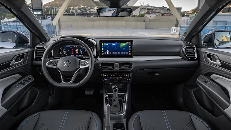 El interior mantiene los materiales de cualquier auto del Mercosur, pero con mucha atención en las texturas y detalles como el tapizado sintético con relieve, las texturas y efectos de las puertas o el grano del plástico. La ergonomía es la misma que la de cualquier auto de la plataforma MQB-A0 pero con un tablero mucho más esculpido.