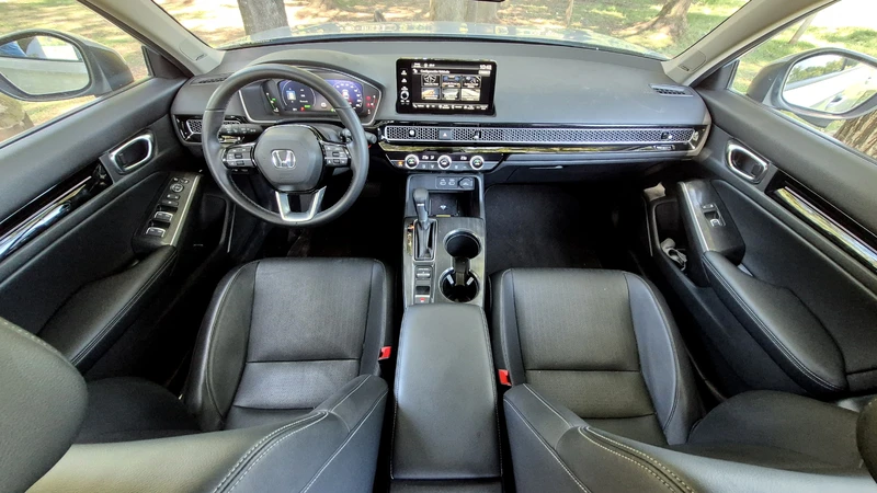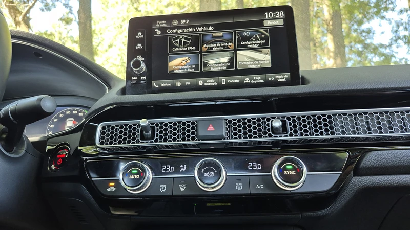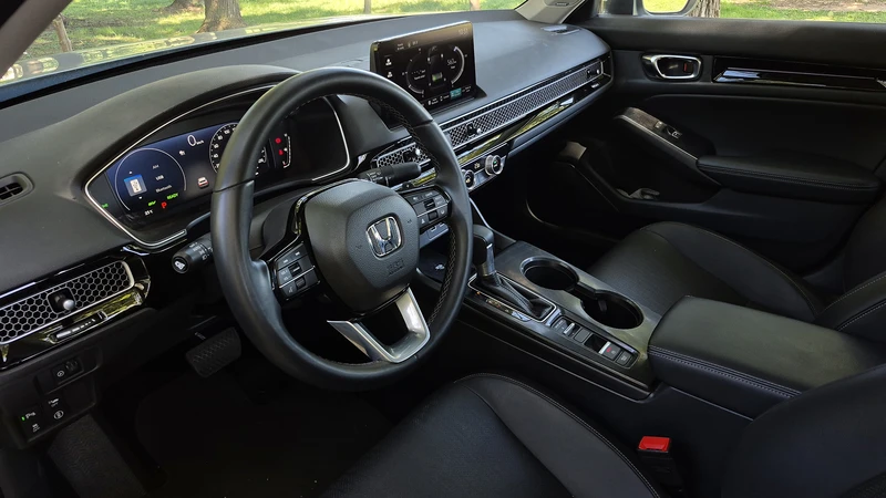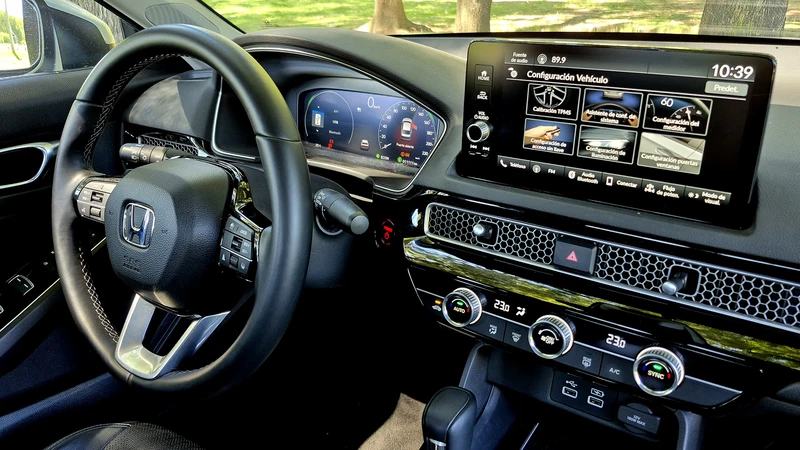 Puertas adentro el Civic te recibe con el nuevo tablero Honda que se repite casi sin alteraciones en HR-V, CR-V y con algunas variantes en ZR-V. Las señas familiares son: