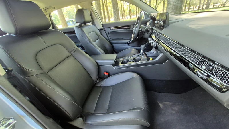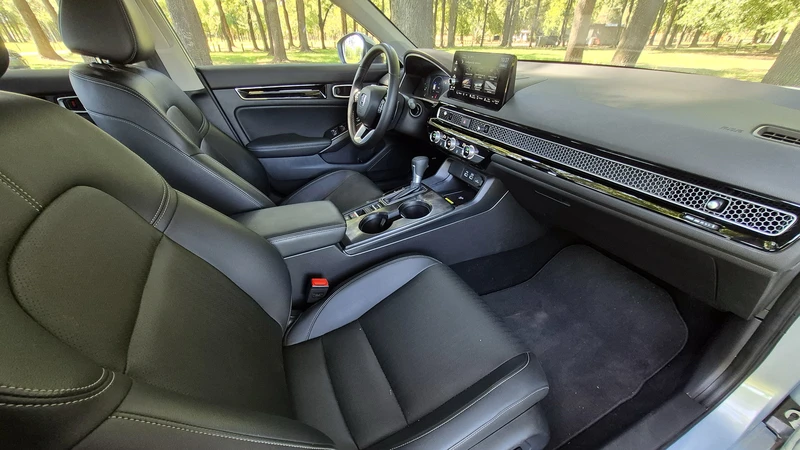 ¡Qué lindo manejar un sedán! Fue lo primero que dije cuándo me senté en el Civic. Asiento bajo y volante recto al frente, son esas cosas que te hacen sentir conectado con el auto. A lo anterior sumale butaca envolvente como un cucharón, múltiples regulaciones y espejos grandes, y todo está servido para disfrutar de la conducción.
