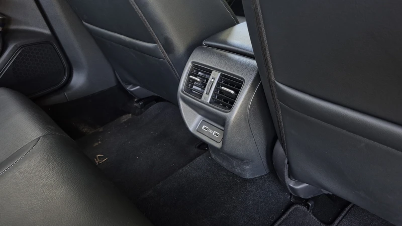 Los asientos laterales están bien excavados, lo que mejora el agarre y confort, el del medio es más alto, por lo que se recomienda para los más bajos. Las amenidades incluyen salidas de aire, puertos USB, portaobjetos, portamapas y los sutiles acentos en negro brillante de las contrapuertas.
