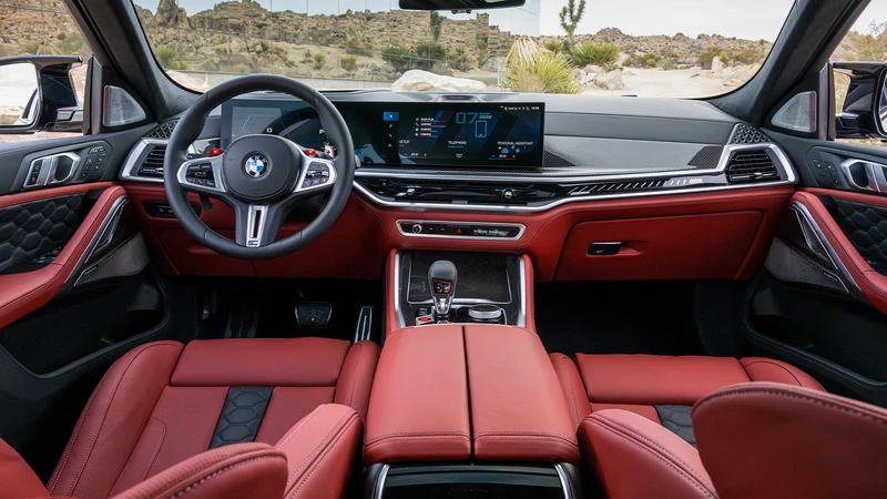 Por dentro, el BMW X6 M Competition sigue los últimos lineamientos de la marca, con elementos como el plafón curvo “panorámico” que aloja la pantalla multimedia y el tablero digital, las molduras de madera negra, la iluminación ambiental, y más.
