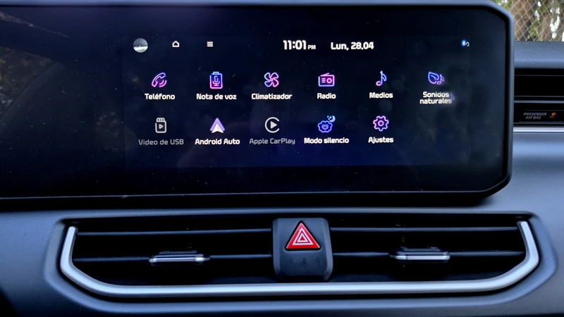 Pasamos a la segunda pantalla, la multimedia, que es la ya conocida, con bastante facilidad de uso, sin navegador propio, y con Android Auto y Carplay inalámbricos. Además de incluir cámara de retroceso y un estéreo con sonido realmente bueno, en la pantalla se pueden elegir sonidos ambientales que te muestro en el video del Test publicado en Youtube.