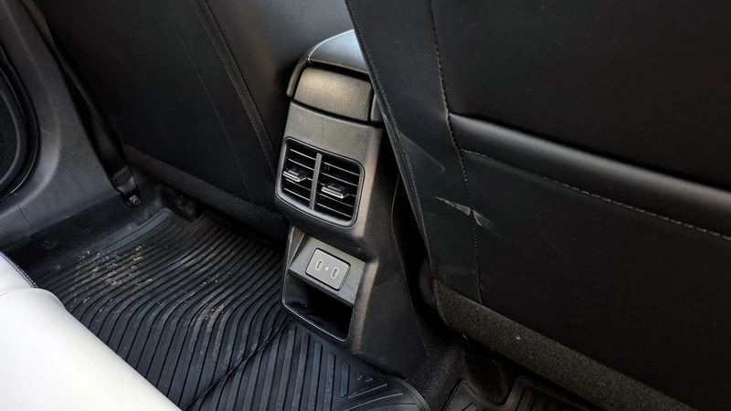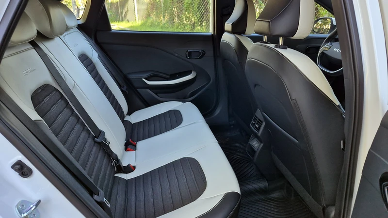 Los asientos laterales son cómodos, el central no tanto, hay tela, cuerina y guarda cosas en las contrapuertas, doble salida de aire y USB C en el centro.