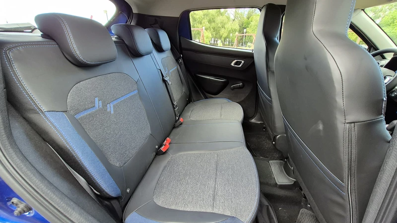Hay una novedad más, al menos respecto del primer Kwid que vino a Argentina y que probé hace unos cuantos años, y es que están los tres apoyacabezas traseros y también el cinturón de tres puntos central. No mencioné al ESP porque es obligatorio en Argentina.