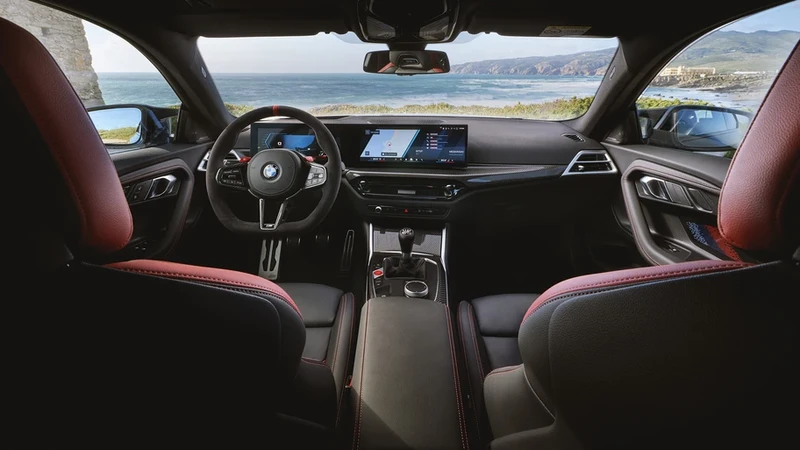 Puertas adentro, el nuevo M2 sigue los lineamientos de los últimos BMW, con el enorme plafón curvo que integra las pantallas para el tablero (12,3”) y el sistema multimedia (14,9”).